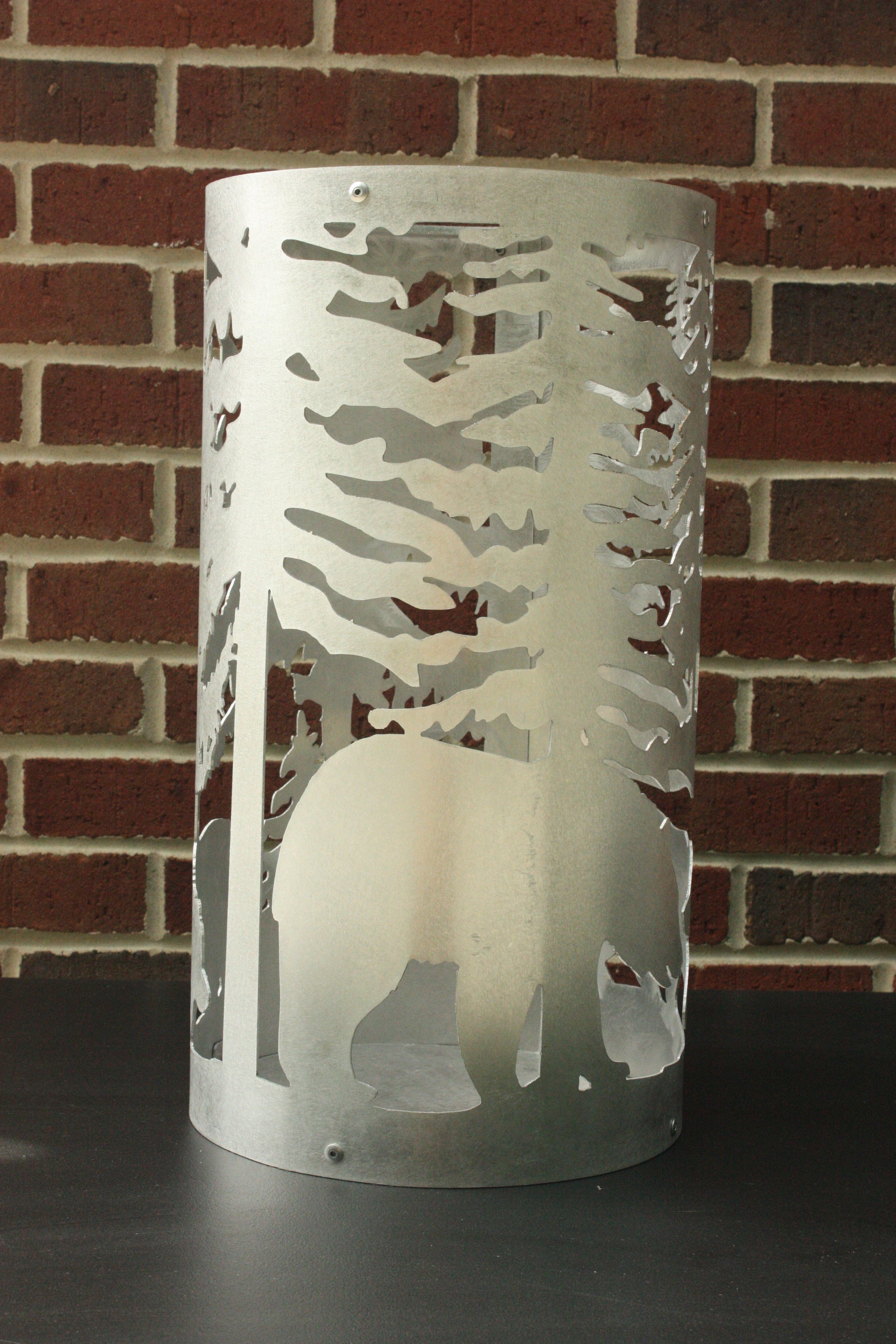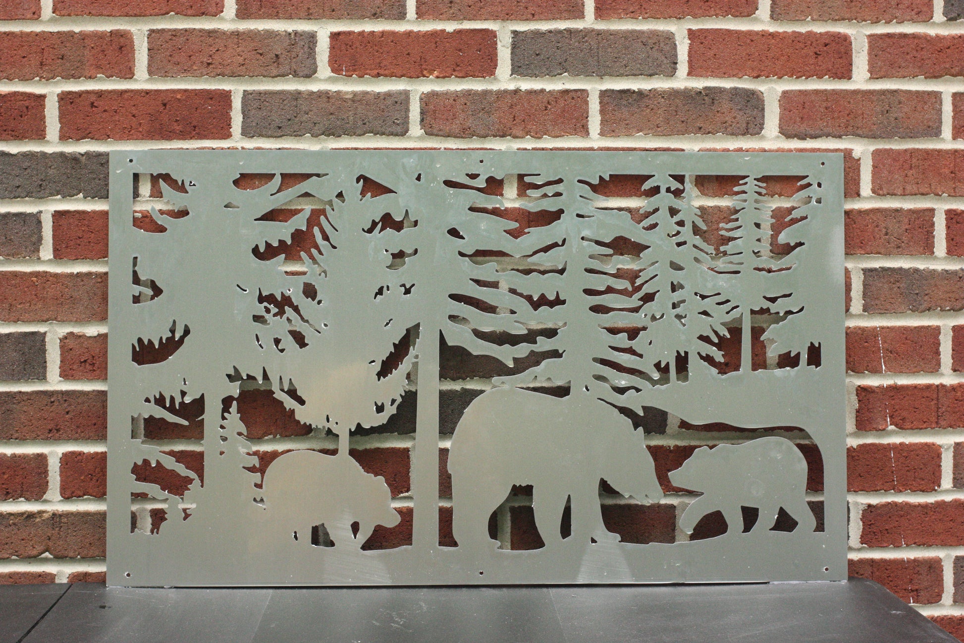 Add a charming touch of wilderness to your garden with the 3 Bear Metal Flower Pot Holder. Featuring a detailed design of three bears amidst a forest scene, this handcrafted metal planter sleeve offers a stunning way to showcase your favorite flowers. Whether you're accenting a rustic cabin or enhancing your backyard with animal-themed décor, this piece combines nature and craftsmanship beautifully.