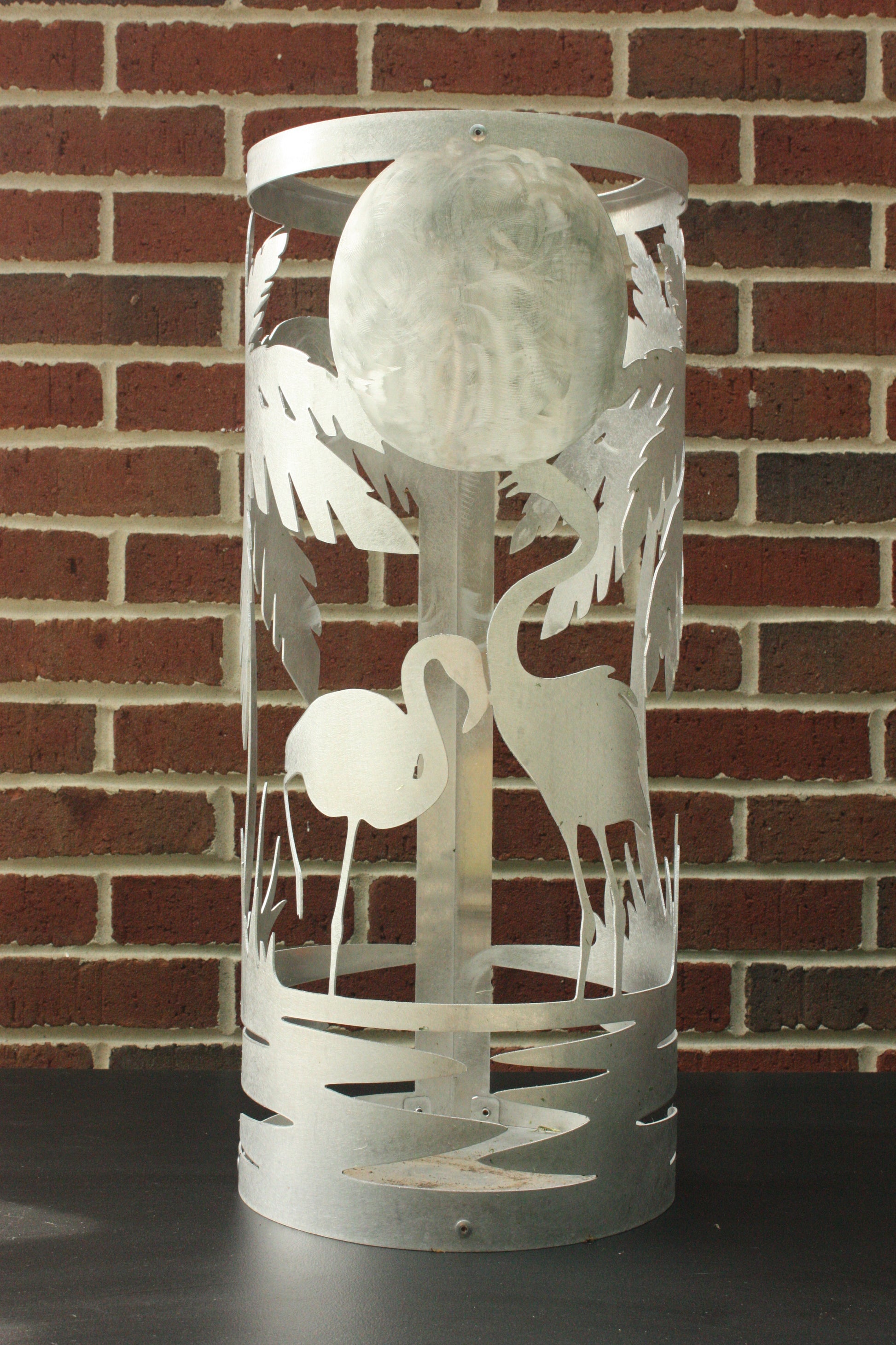 Add a vibrant and tropical flair to your garden with this elegant palm tree planter featuring a graceful flamingo design. Crafted from galvanized steel, this flower skirt planter blends durability with decorative artistry, making it the perfect centerpiece for patios, porches, or garden beds. The silhouette cutout of palm trees and flamingos creates a serene, beach-inspired vibe that brings the spirit of summer right into your backyard.